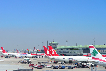 イスタンブール トルコ 4 月 17年 イスタンブール トルコのイスタンブールのアタチュルク空港での飛行機 の写真素材 画像素材 Image